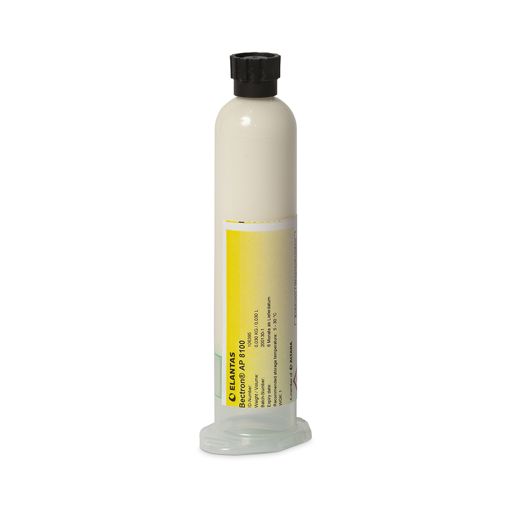 Bectron® AP 8100 ist ein thixotropes Material, das geeignet ist, die meisten Arten von elektronischen Bauteilen wie LEDs und Steckverbinder auf Leiterplatten selektiv abzudecken. Es kann Durchkontaktierungen und plattierte Löcher in der Leiterplatte abdecken und Pins, Jumper und andere Komponenten vollständig umhüllen.